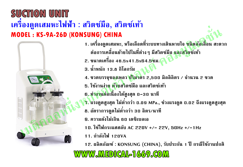 เครื่องซัคชั่นแบบมีล้อเลื่อน มีสวิตซ์มือ/ สวิตซ์เท้า